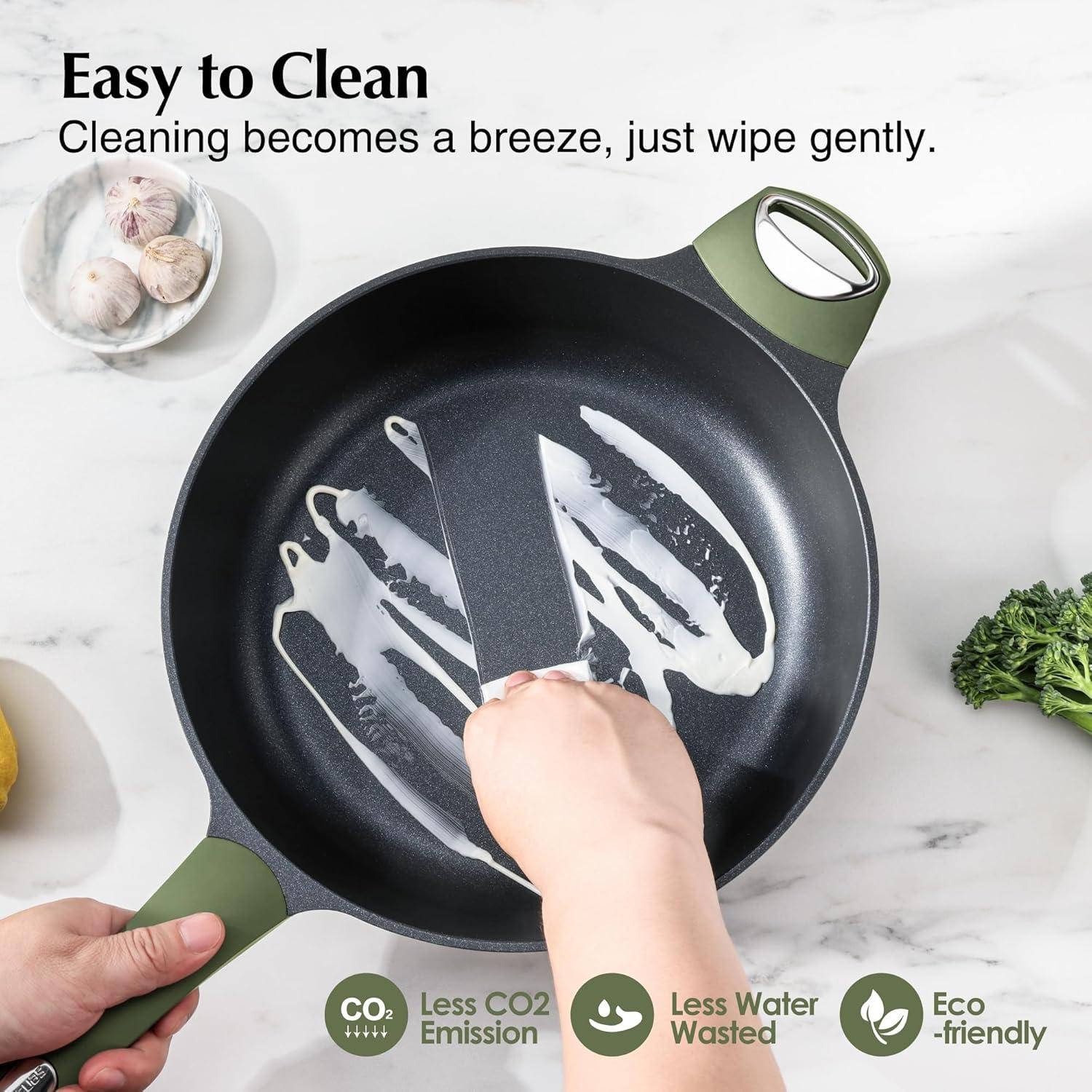 Healthy Nonstick – Switzerland ILAG nonstick coating, 100% non-toxic, free of PFOA, PFOS, APEO, lead, cadmium and other toxic materials that can leach into food, safe for you, your family and the environment.