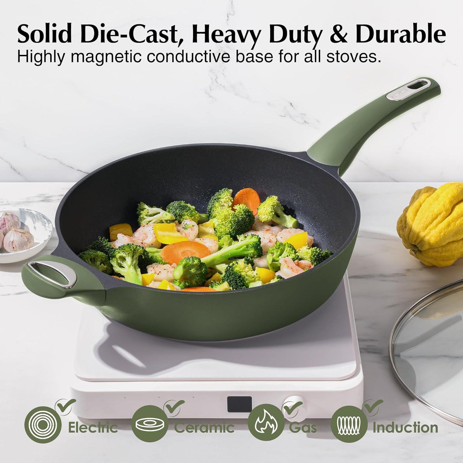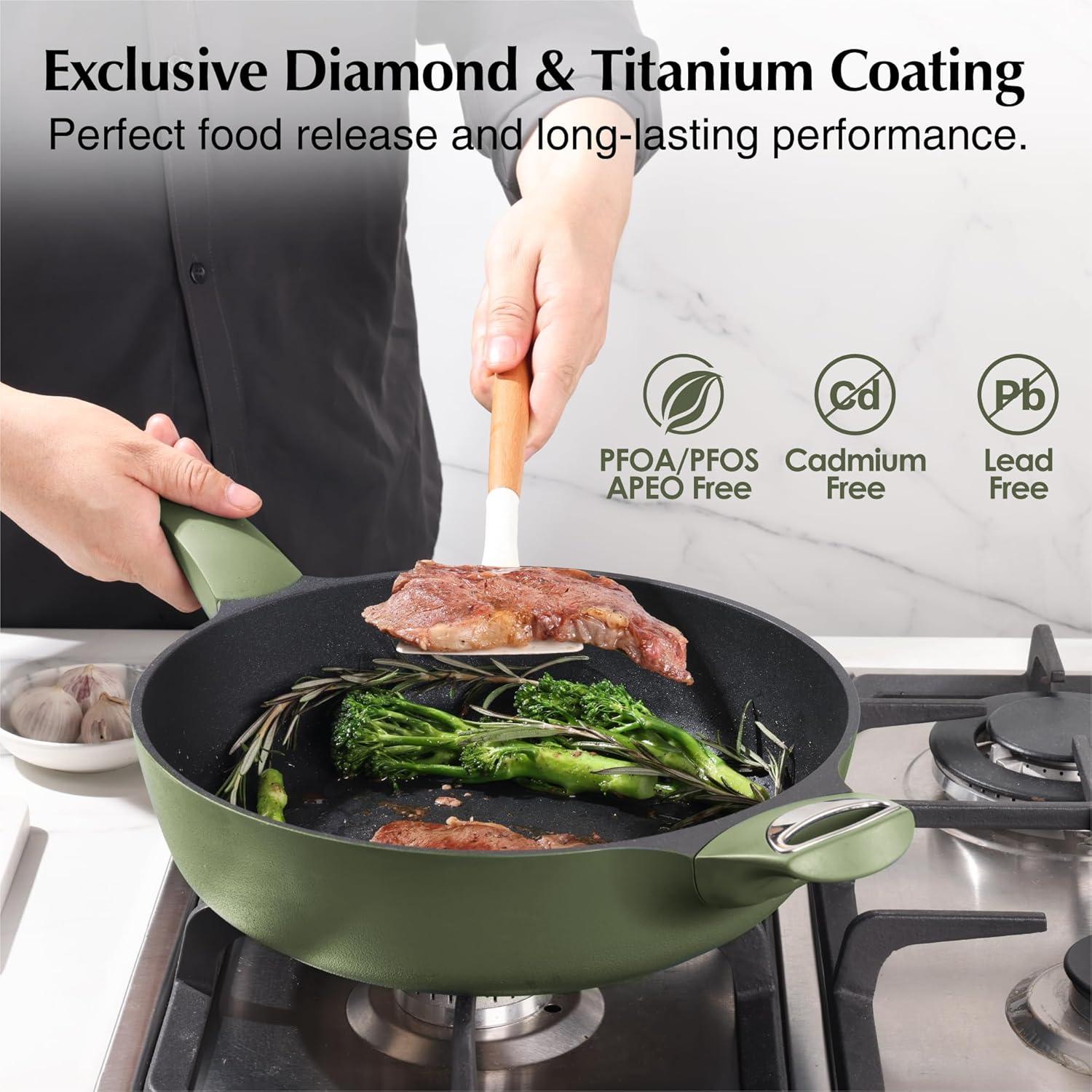 Die-Cast Aluminum – SENSARTE cooking pot set is die-cast aluminum, strong, durable, heavy-duty and won't warp in 10 years.