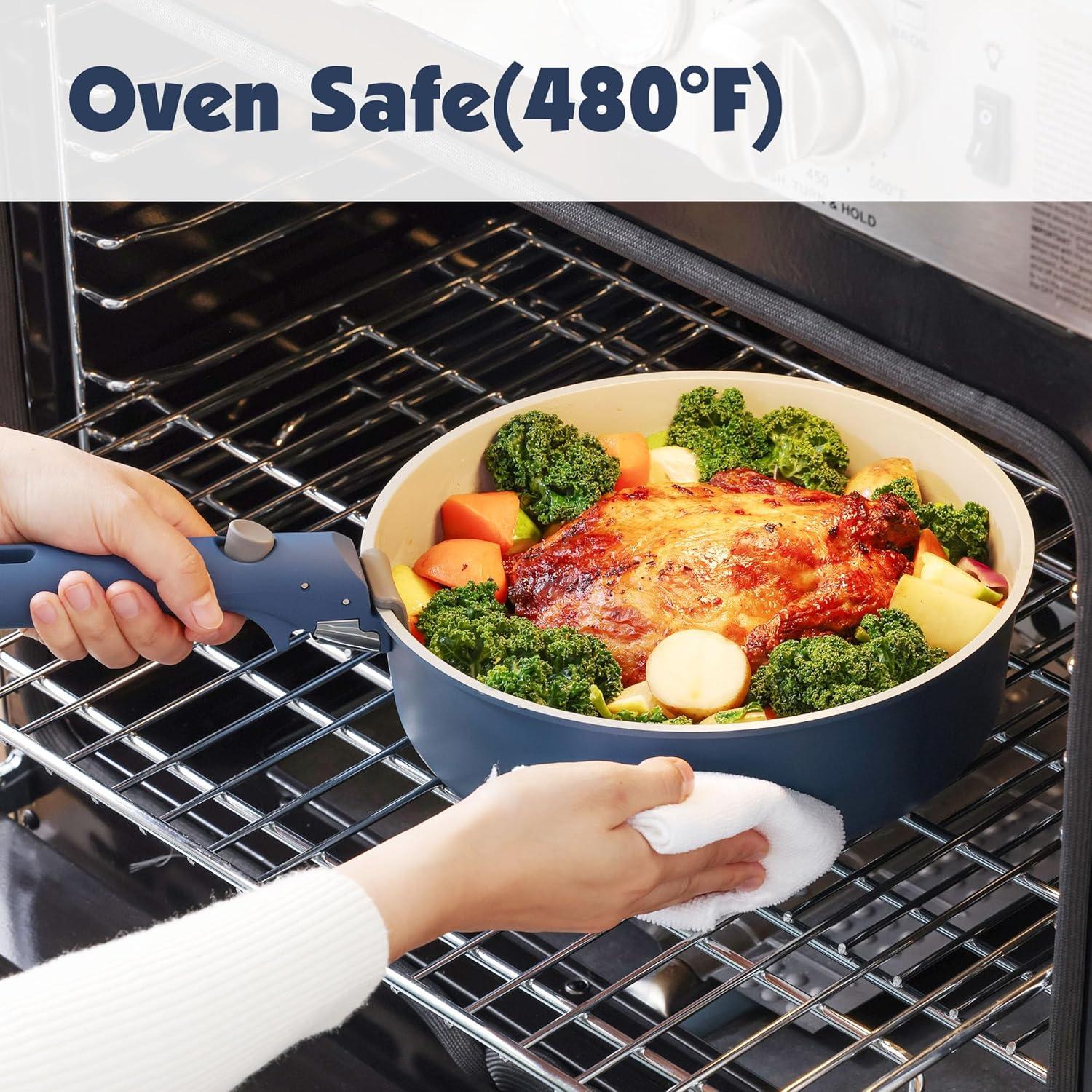 imageSENSARTE 17 Piece Ceramic Pots and Pans Set Nonstick Detachable Handle Cookware Induction Kitchen Cookware Set with Removable Handle Dishwasher  Oven Safe GreenNavy