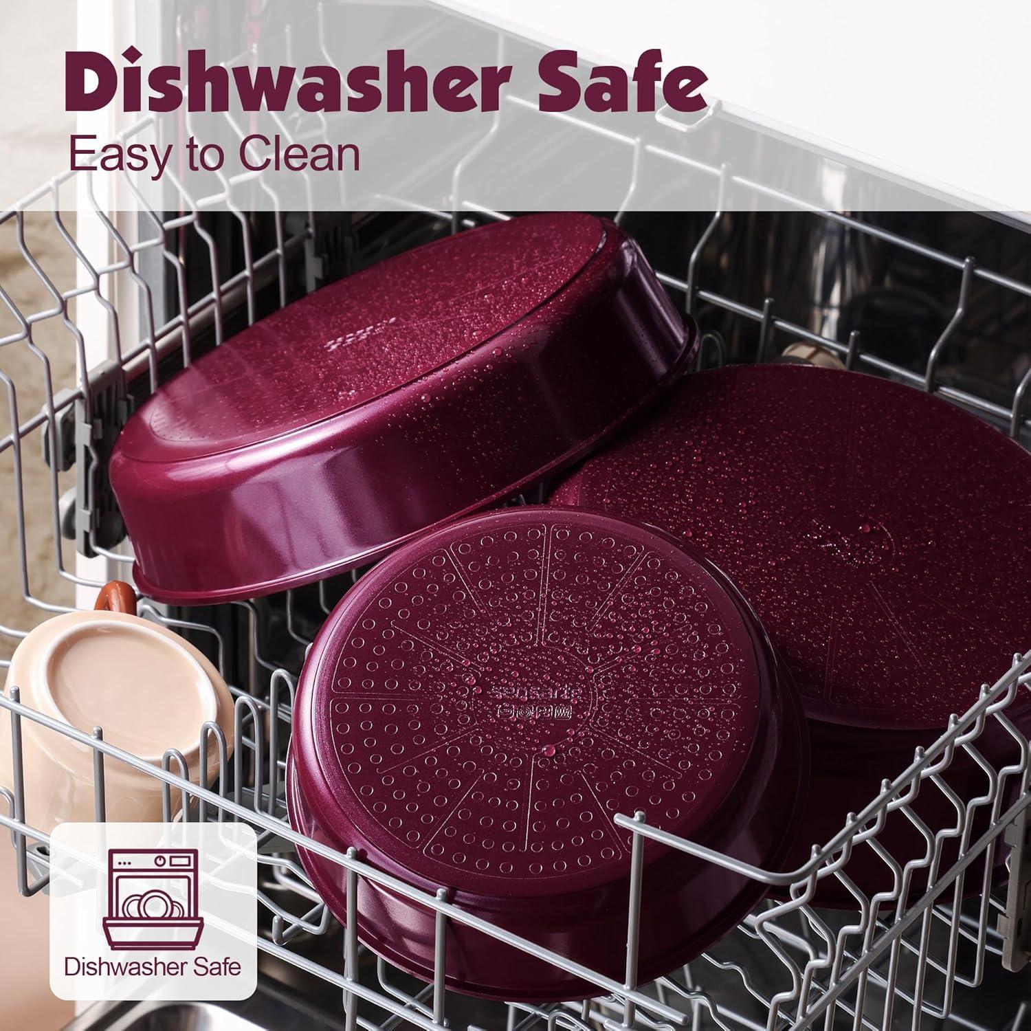 Dishwasher Safe – Cleaning is a breeze. Professional wear-resistant design for the bottom of the pan set that prevents black residue even when used in the dishwasher.