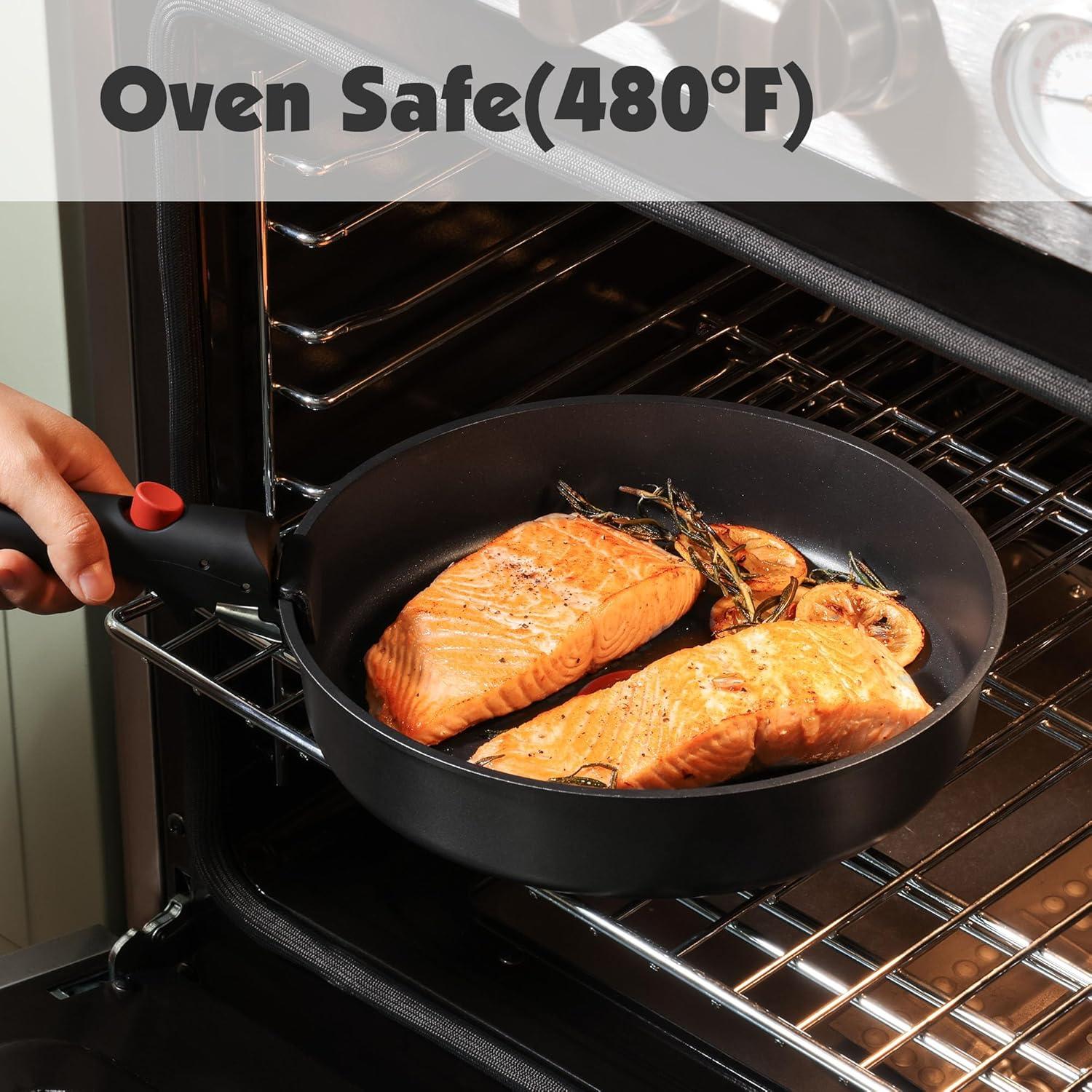 Unique Removable Handle – Supports up to 22 pounds, the handle is professionally tested, fit for removable handle set pots and pans, no need to worry about wobbly handles.