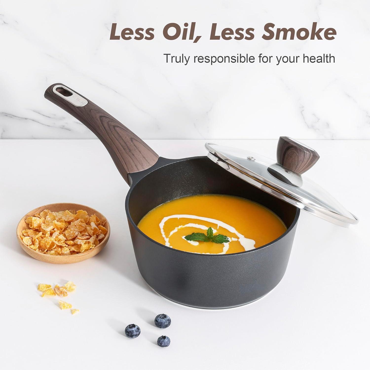 Healthy Ceramic Cookware Set – Ceramic non-stick surface, non toxic, free of PFOA, PTFE, PFAS, PFOS, lead, cadmium and other toxic substances that can leach into food.