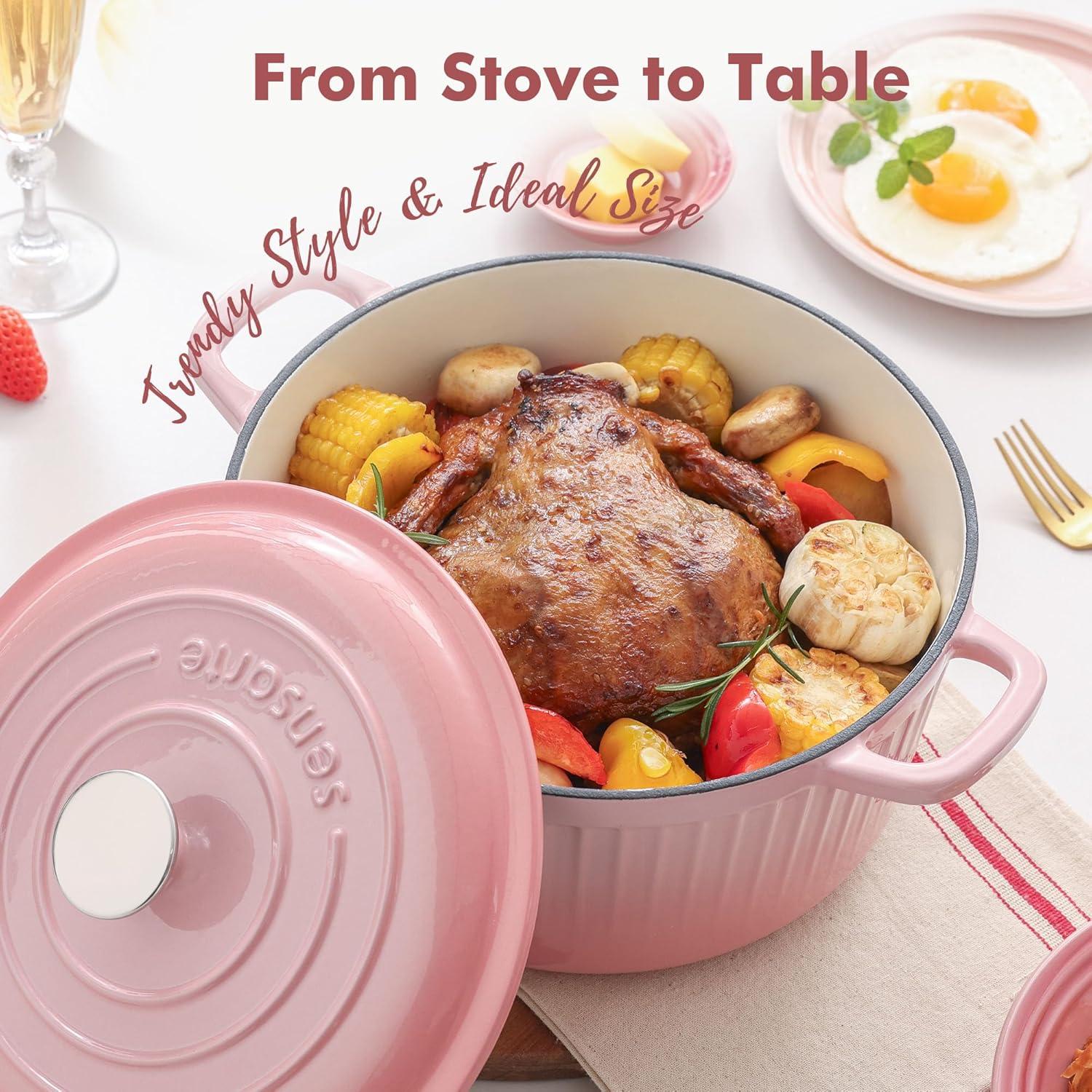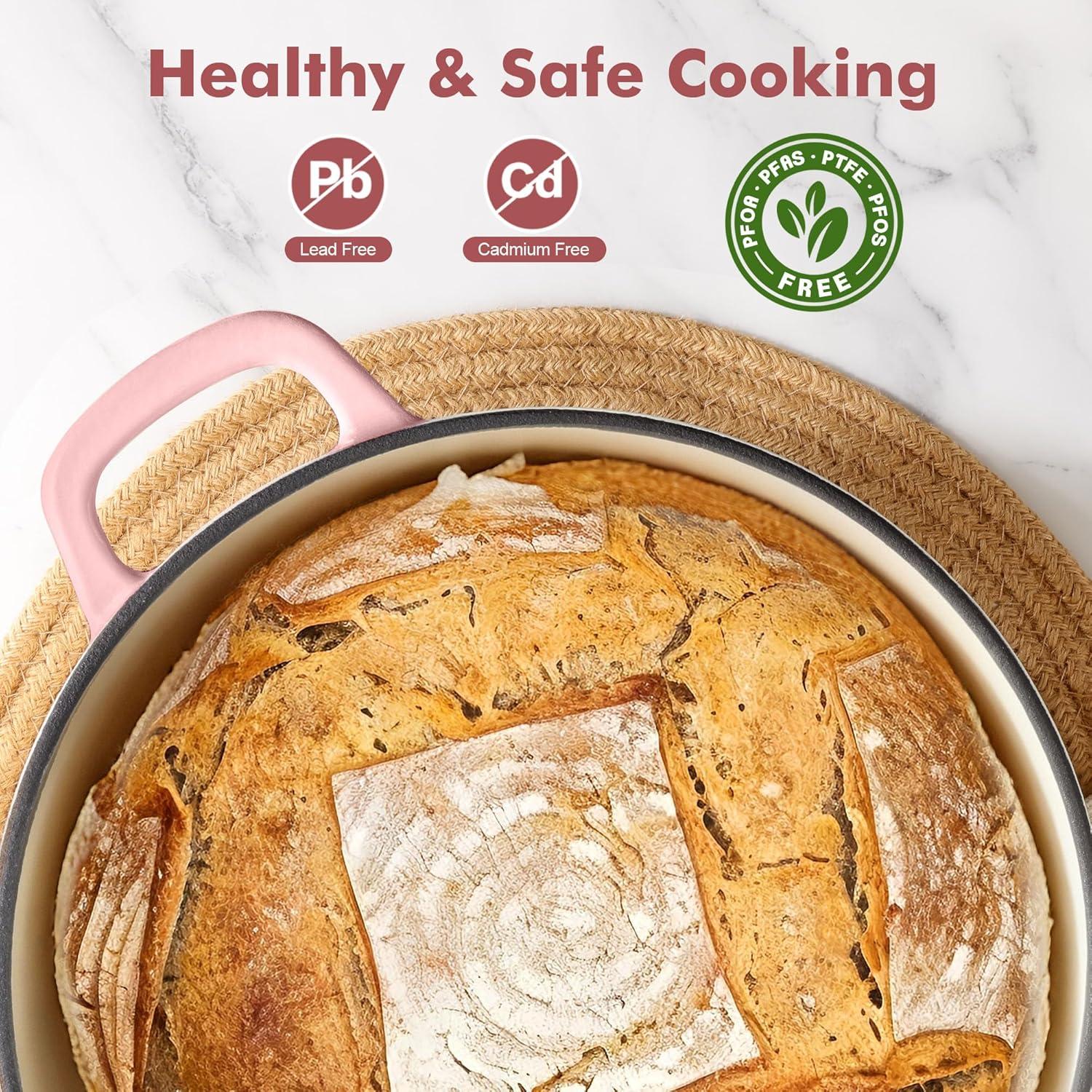 Non-toxic & Long-lasting: SENSARTE dutch oven is made of cast iron core coated with non-stick enamels, no toxic substance or harmful chemicals leaching into food. No worry about rust or corrosion, and no seasoning needed.
