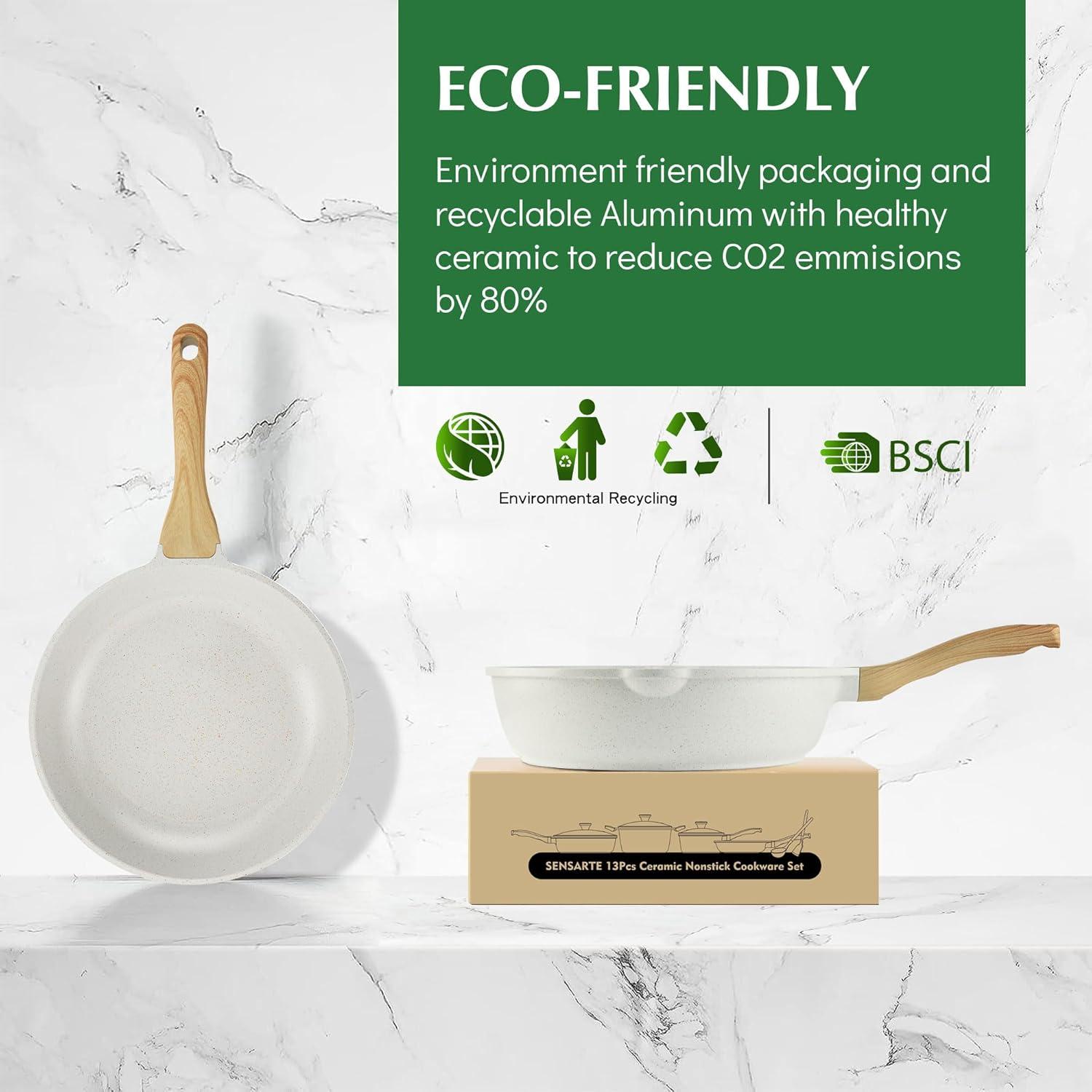 Lightweight & Sturdy – The non sticking pan inside is made of cast aluminum, which is more sturdy and not easy t warp. SENSARTE non-stick frying pan is passed international certification.