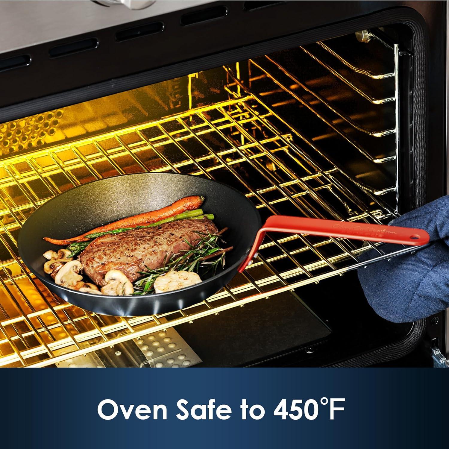 Scratch-Resistant Anodized Exterior: The anodized exterior of the pan is 10X more long-lasting and resistant to scratches than traditional cookware. No more worrying about the coating peeling or chipping, even with daily use.