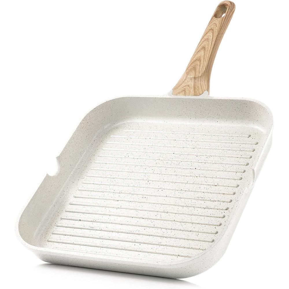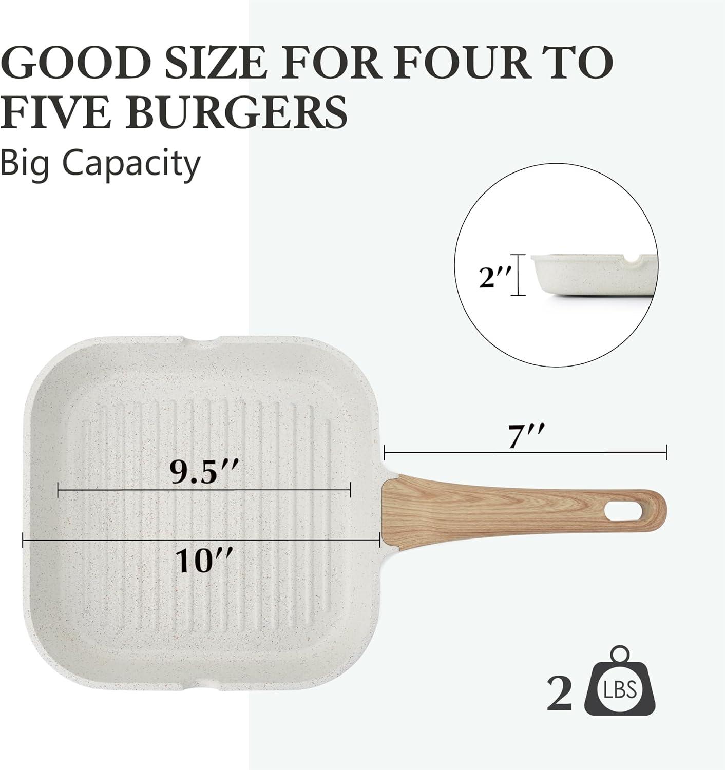 SENSARTE Nonstick Grill Pan for Stove Tops, Versatile Griddle with Pour Spouts, Square Big Cooking Surface, Durable Skillet Indoor & Outdoor Grilling. PFOA Free, 9.5 Inch(White Ceramic)