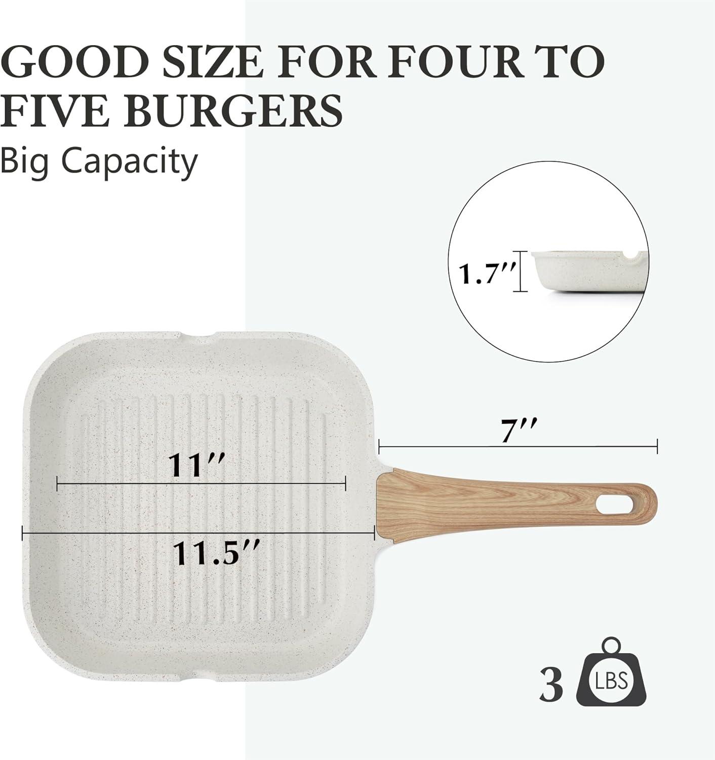 Sturdy & Durable: This grill pan is made of die cast aluminum, stury and no warp. The bakelite handle features comfortable to grip and stays cool to the touch.