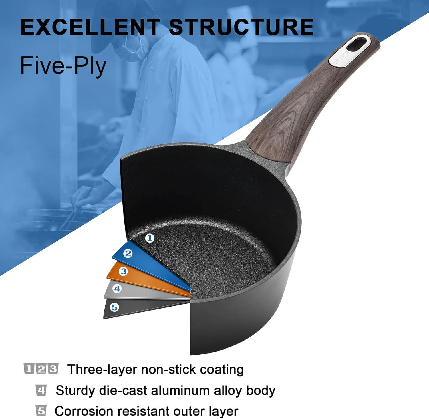 Excellent Structure – The unique shot blasting technology combined with the five-layer structure makes the sauce pot more durable and uses less oil to make healthier food.