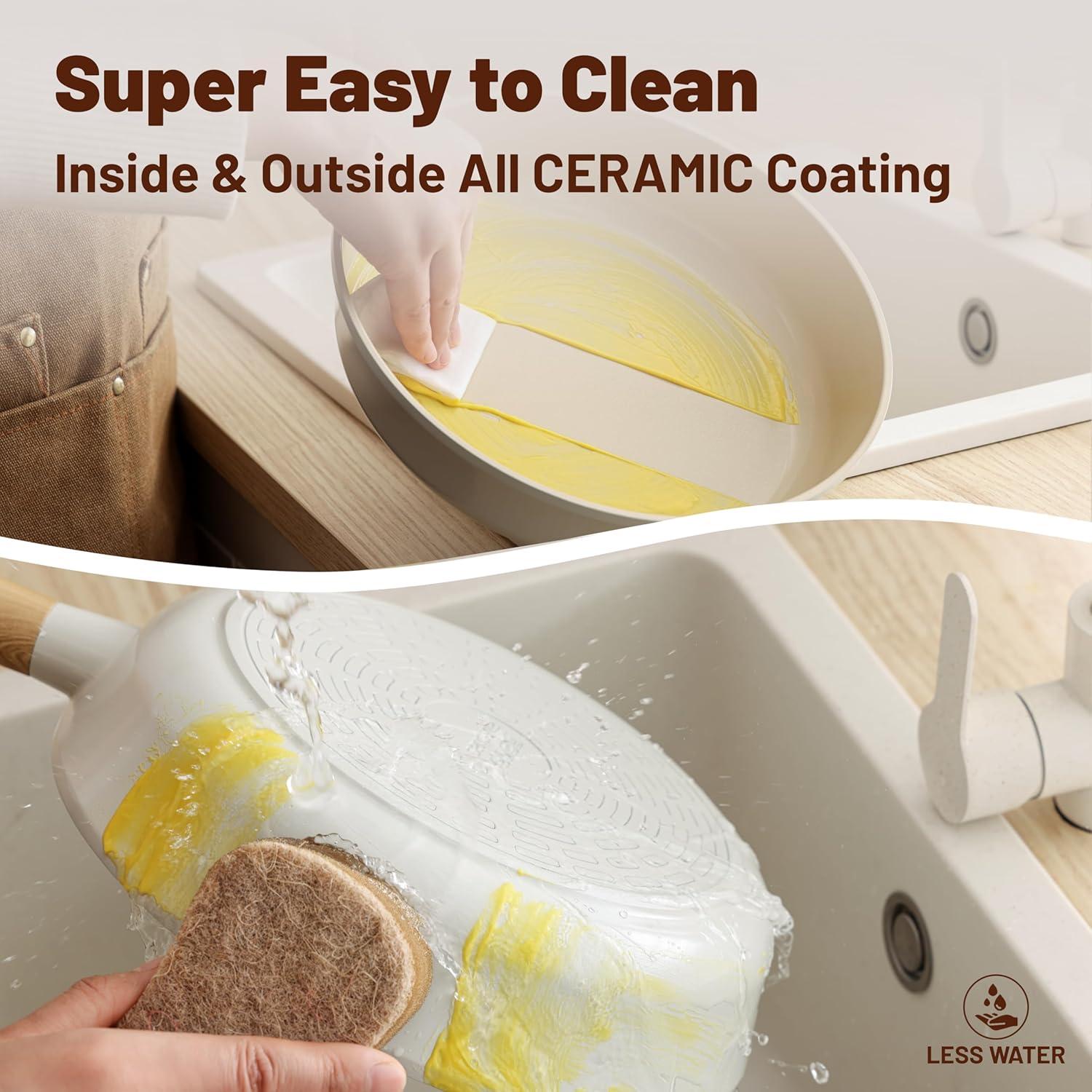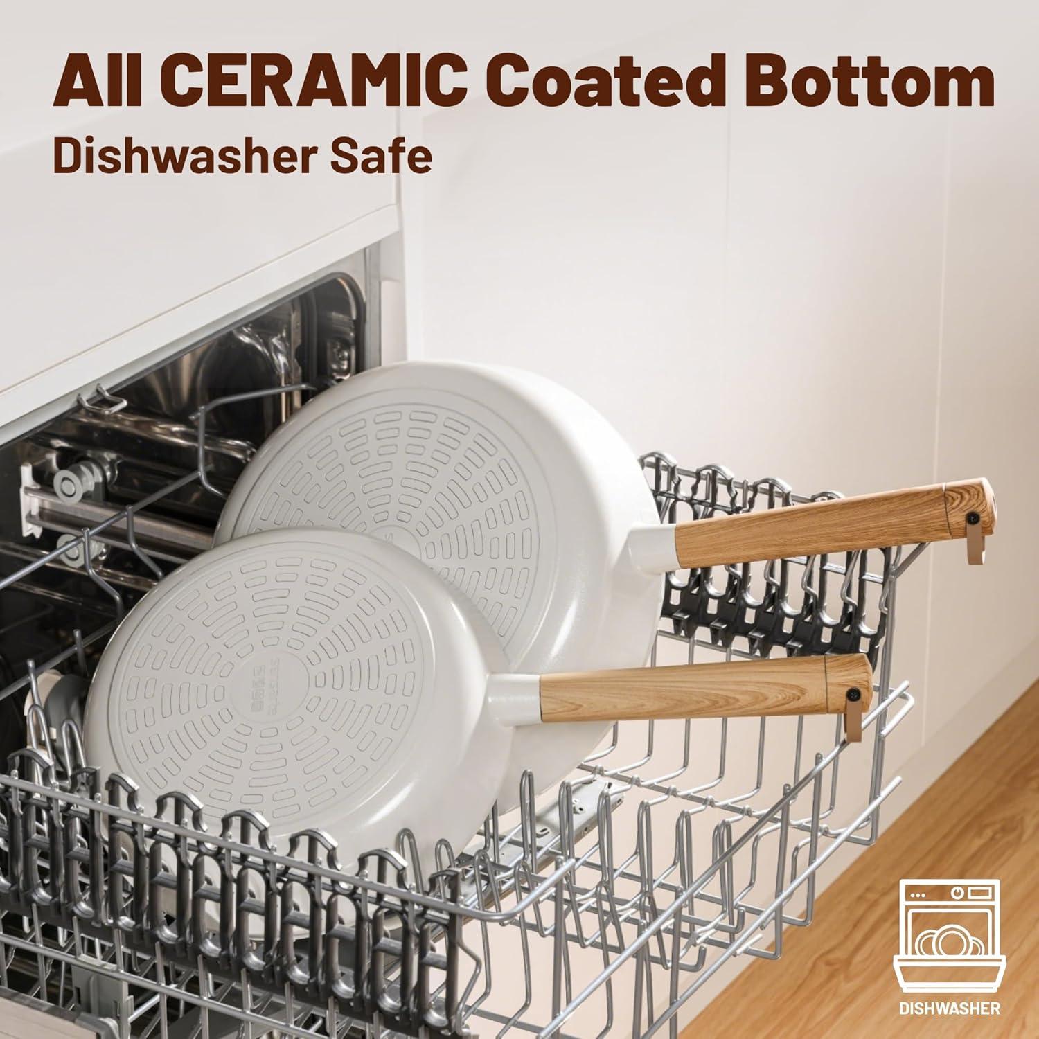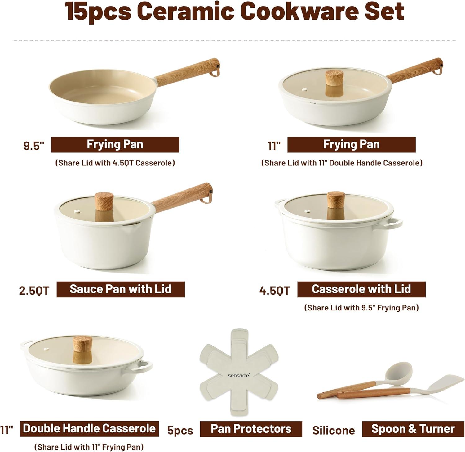 imageSENSARTE Pots and Pans Set Nonstick Cookware Set Kitchen Cooking Set Nonstick Dishwasher ampamp Oven Safe Induction Compatible Free of Intentionally Added PFOAPFOS 13pcs BlackCream Ceramic