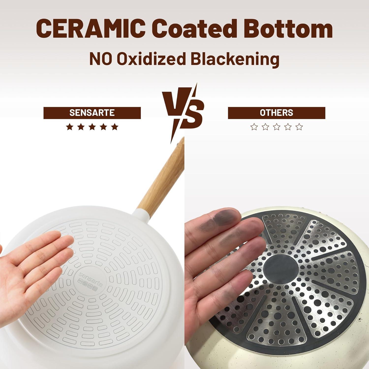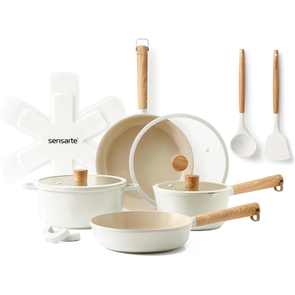 SENSARTE Pots and Pans Set Nonstick Cookware Set Kitchen Cooking Set Non-stick, Dishwasher & Oven Safe, Induction Compatible, Free of Intentionally Added PFOA/PFOS, 13pcs, Black(Cream Ceramic)